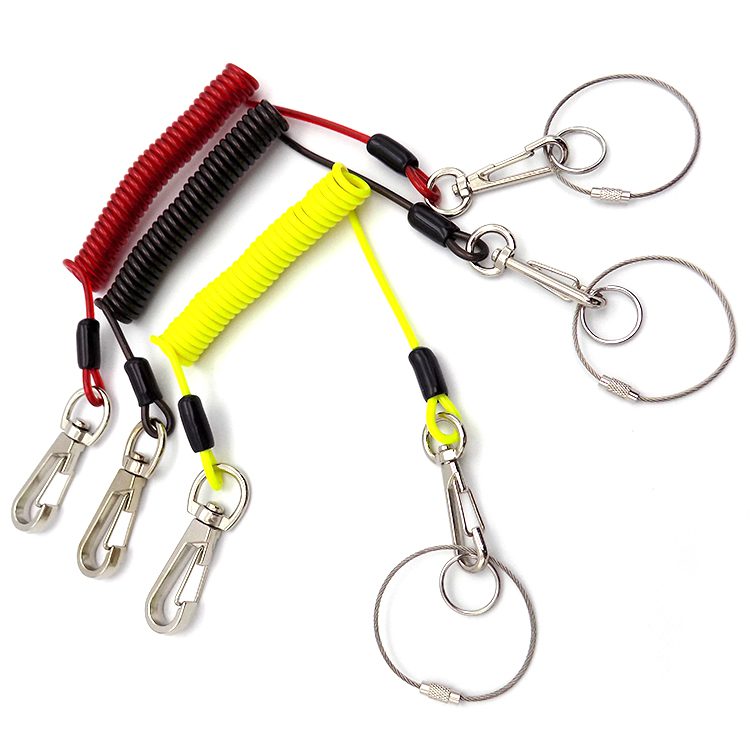 Customized Retractable Grey Plastic Coiled Spring Tool Lanyard with Swivel Hookude work